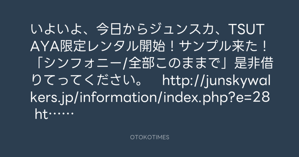 いよいよ、今日からジュンスカ、TSUTAYA限定レンタル開始!サンプル来た!「シンフ... -
