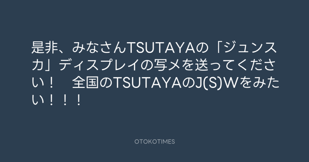 是非、みなさんTSUTAYAの「ジュンスカ」ディスプレイの写メを送ってください! 全... -