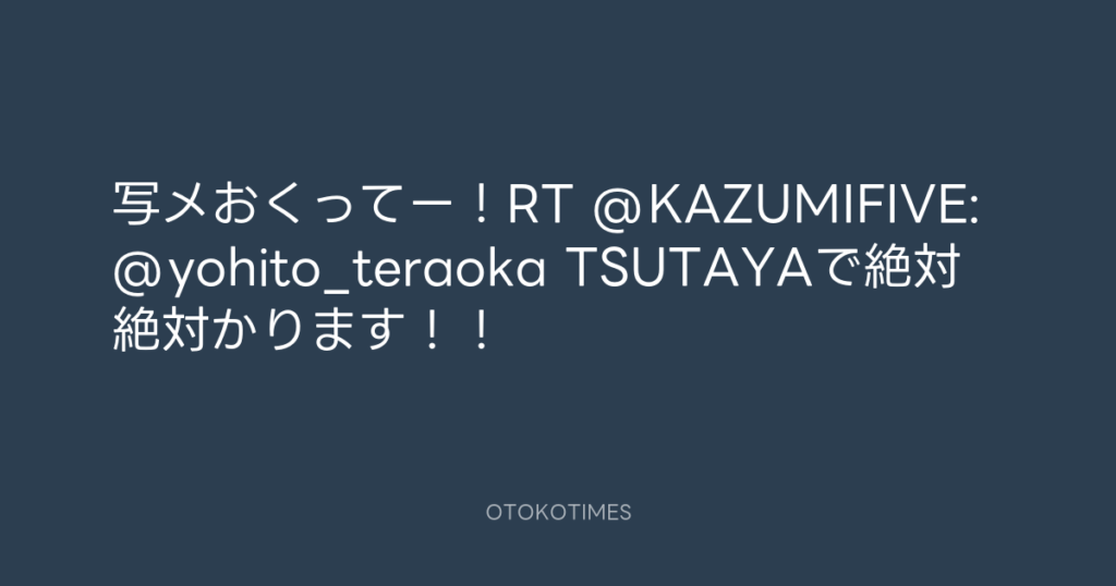写メおくってー!RT @KAZUMIFIVE: @yohito_teraoka TSUTAYAで絶対絶対かります!! -