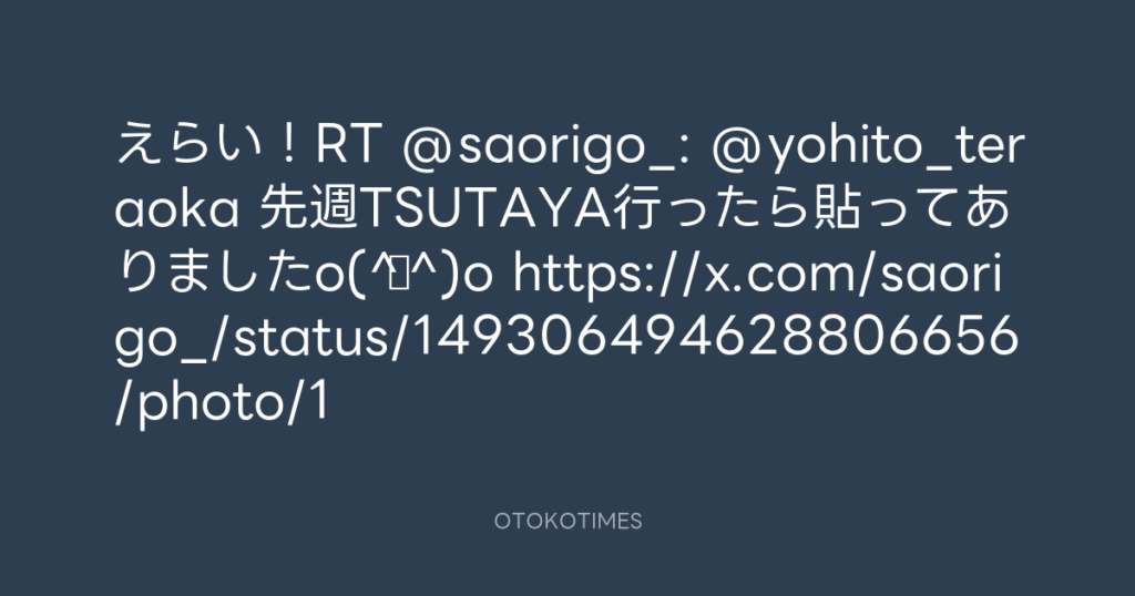 えらい!RT @saorigo_: @yohito_teraoka 先週TSUTAYA行ったら貼ってありましたo(^▽... -
