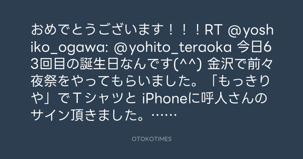 おめでとうございます!!!RT @yoshiko_ogawa: @yohito_teraoka 今日63回目の誕生... -