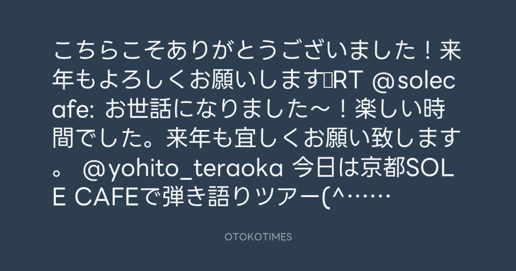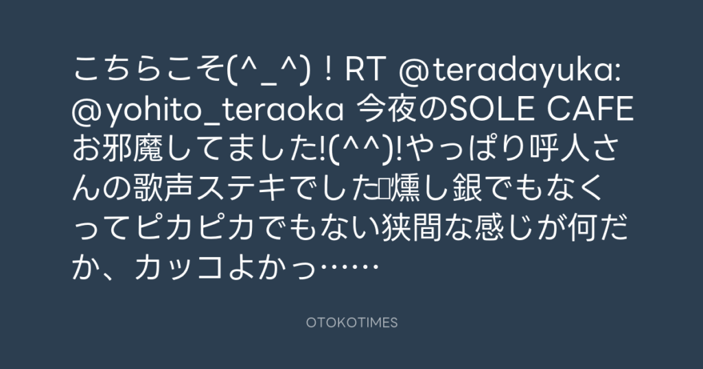 こちらこそ(^_^)!RT @teradayuka: @yohito_teraoka 今夜のSOLE CAFEお邪魔してま... -
