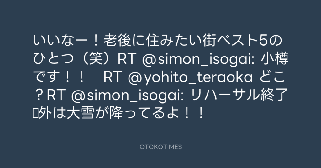 いいなー!老後に住みたい街ベスト5のひとつ(笑)RT @simon_isogai: 小樽です!!... -