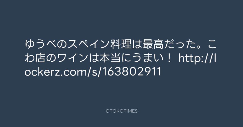 ゆうべのスペイン料理は最高だった。こわ店のワインは本当にうまい! http://locke... -
