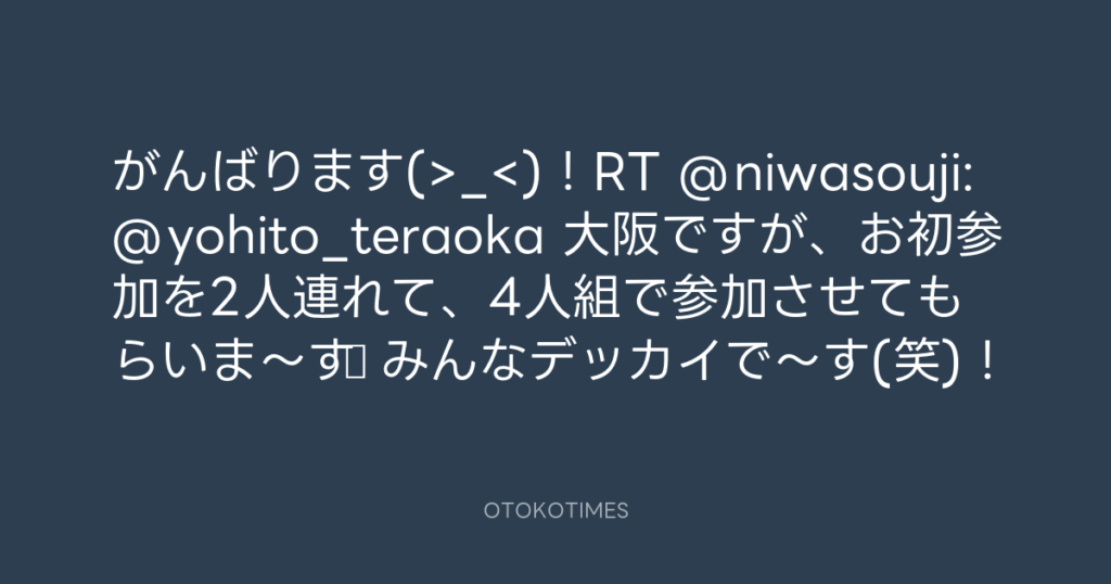 がんばります(>_<)!RT @niwasouji: @yohito_teraoka 大阪ですが、お初参加... -