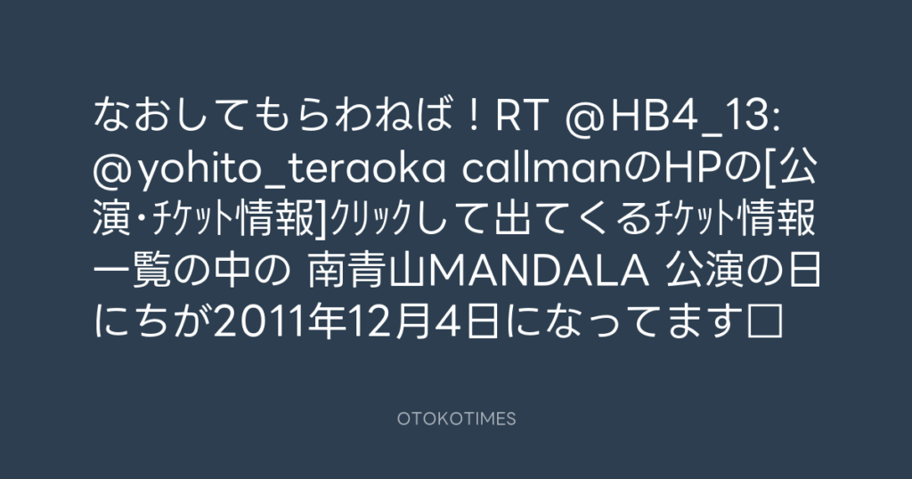 なおしてもらわねば!RT @HB4_13: @yohito_teraoka callmanのHPの[公演・チケット情報]ク... -
