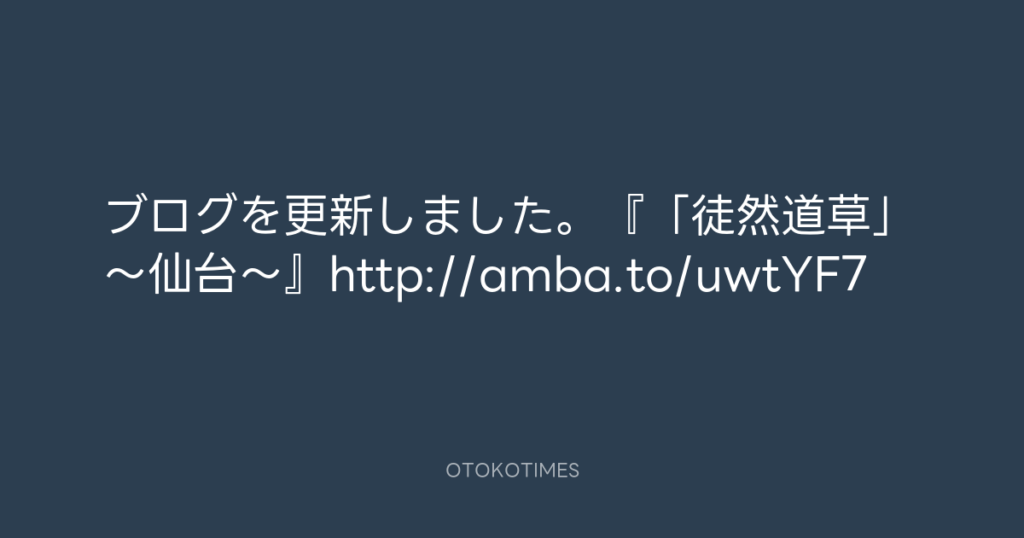 ブログを更新しました。『「徒然道草」〜仙台〜』http://amba.to/uwtYF7 -