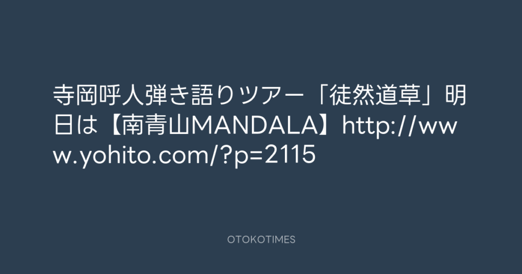 寺岡呼人弾き語りツアー「徒然道草」明日は【南青山MANDALA】http://www.yohito.co... -