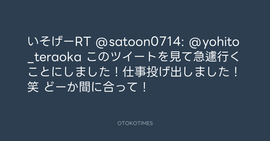 いそげーRT @satoon0714: @yohito_teraoka このツイートを見て急遽行くことにしま... -