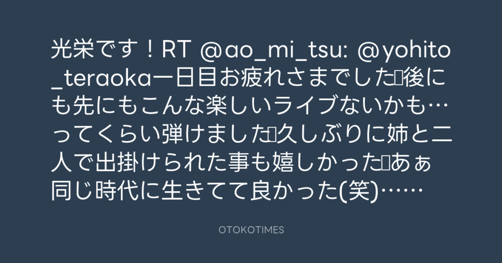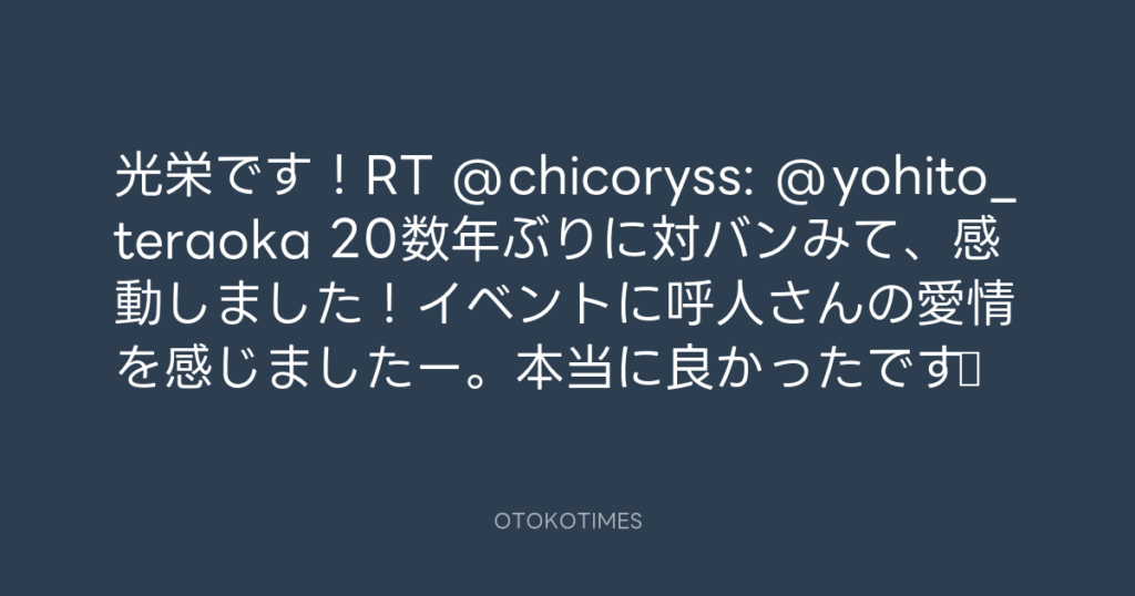 光栄です!RT @chicoryss: @yohito_teraoka 20数年ぶりに対バンみて、感動しました... -