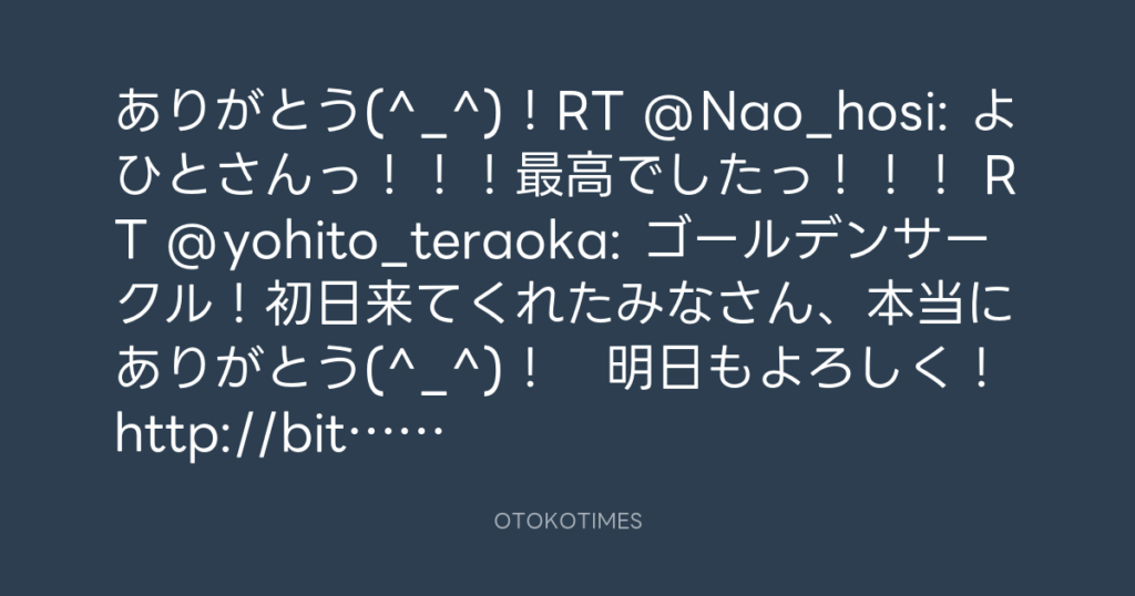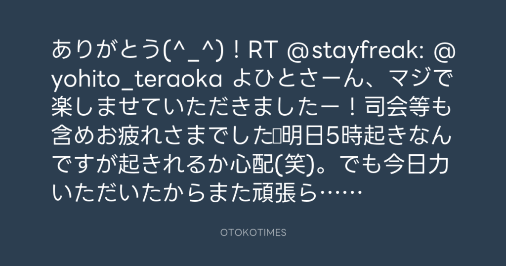 ありがとう(^_^)!RT @stayfreak: @yohito_teraoka よひとさーん、マジで楽しませ... -