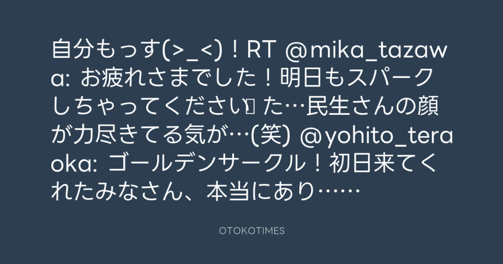 自分もっす(>_<)!RT @mika_tazawa: お疲れさまでした!明日もスパークしち... -