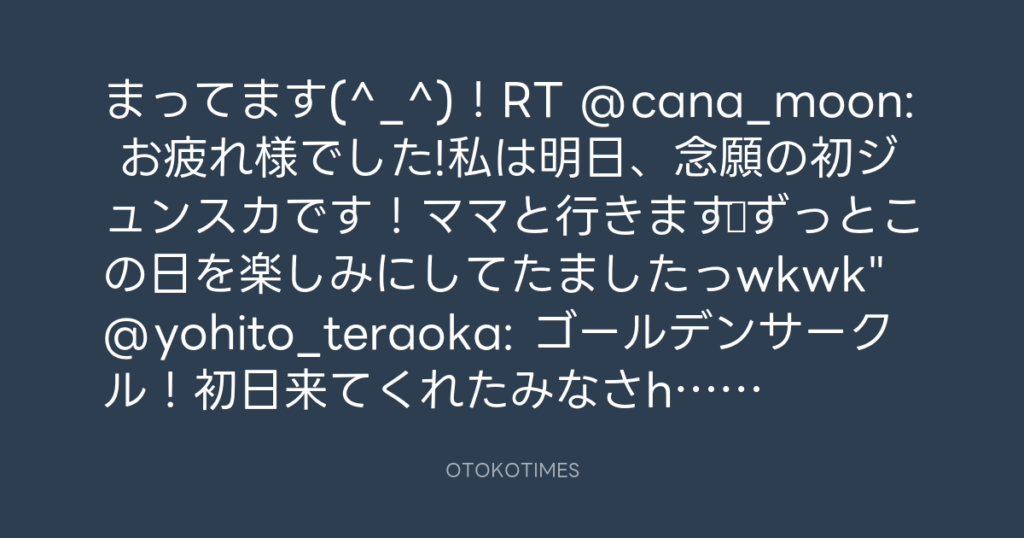 まってます(^_^)!RT @cana_moon: お疲れ様でした!私は明日、念願の初ジュンスカで... -