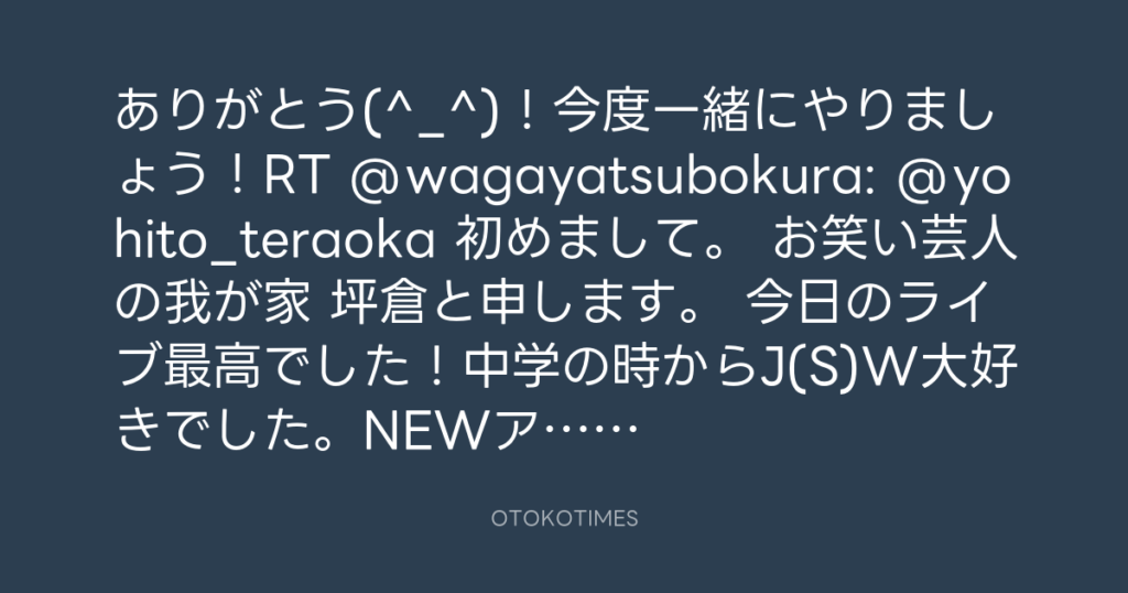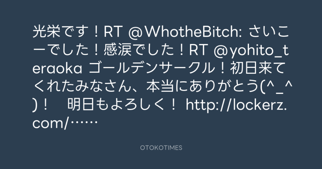 光栄です!RT @WhotheBitch: さいこーでした!感涙でした!RT @yohito_teraoka ゴ... -