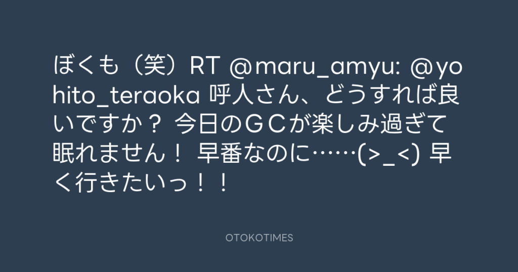 ぼくも(笑)RT @maru_amyu: @yohito_teraoka 呼人さん、どうすれば良いですか? ... -