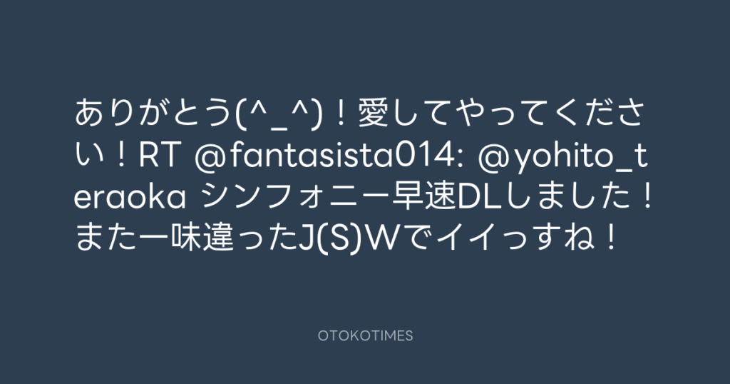 ありがとう(^_^)!愛してやってください!RT @fantasista014: @yohito_teraoka シ... -