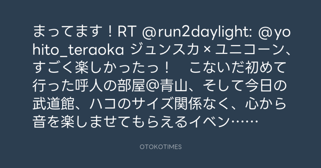まってます!RT @run2daylight: @yohito_teraoka ジュンスカ×ユニコーン、すごく楽... -