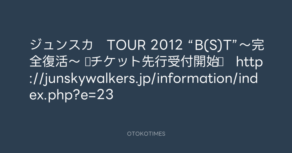 ジュンスカ TOUR 2012 “B(S)T”〜完全復活〜 ★チケット先行受付開始★ http://juns... -