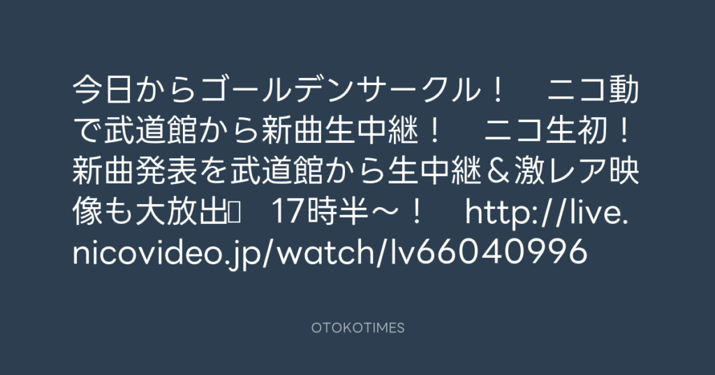 いよいよ明日はゴールデンサークル! ニコ動で武道館から新曲生中継! ニコ生初... -