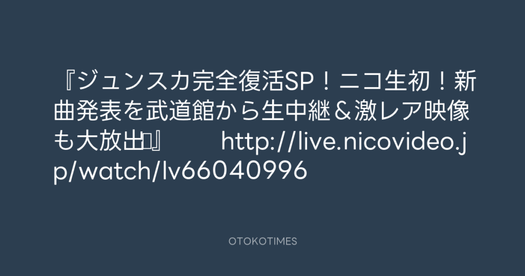 『ジュンスカ完全復活SP!ニコ生初!新曲発表を武道館から生中継&激レア映像も大...