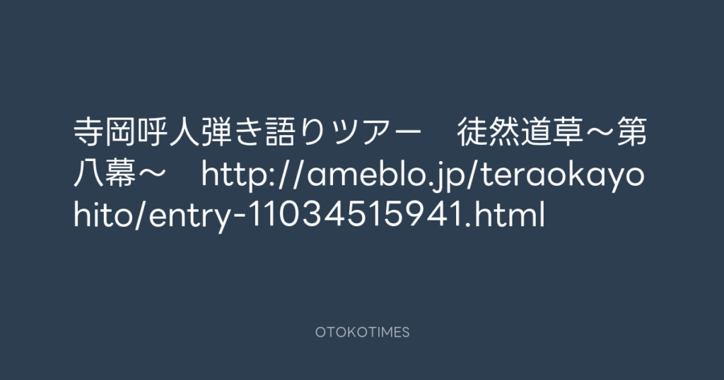 寺岡呼人弾き語りツアー 徒然道草~第八幕~ http://ameblo.jp/teraokayohito/en... -