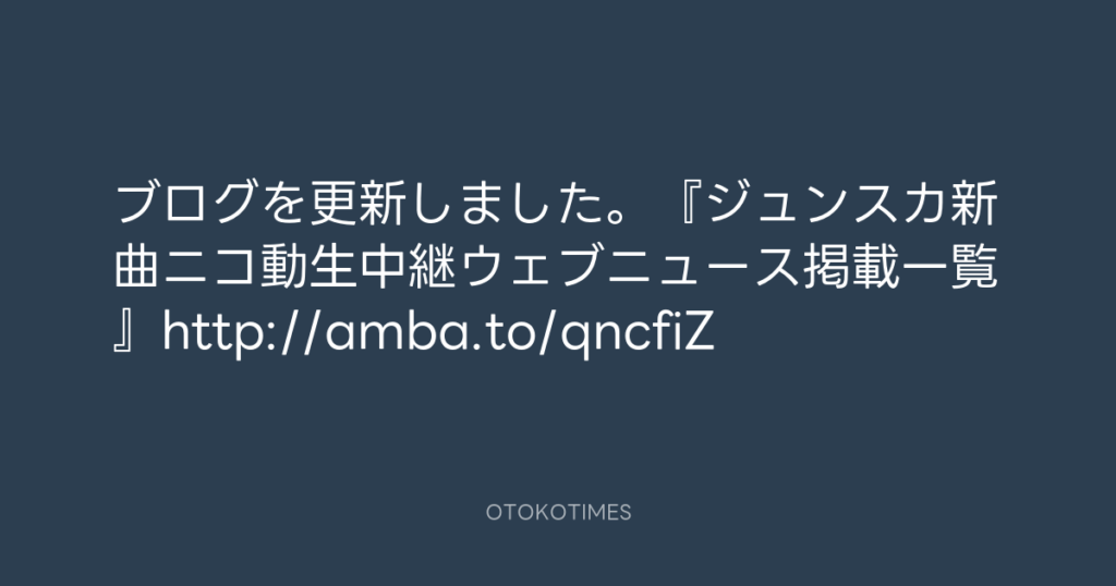 ブログを更新しました。『ジュンスカ新曲ニコ動生中継ウェブニュース掲載一覧』htt... -