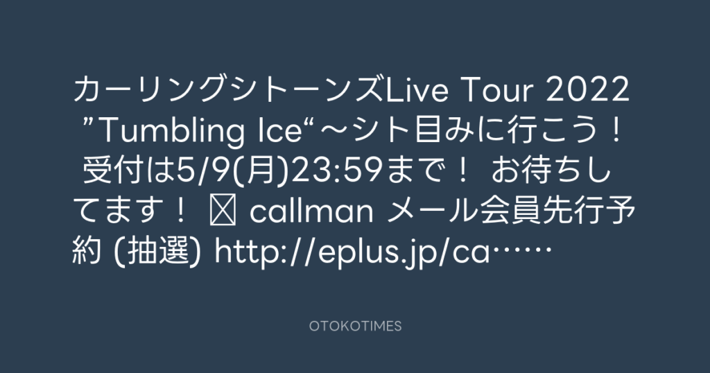 カーリングシトーンズLive Tour 2022 ”Tumbling Ice“~シト目みに行こう! 受付は5... -