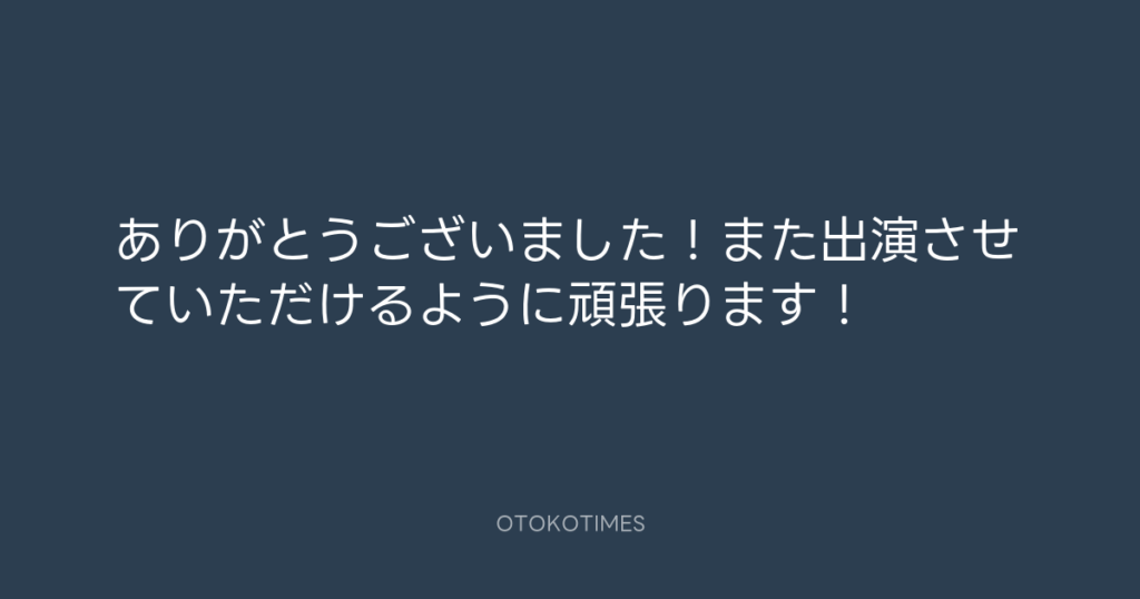 ありがとうございました!また出演させていただけるように頑張ります! -