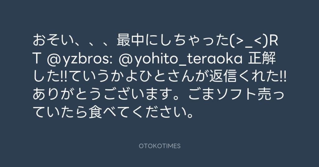 おそい、、、最中にしちゃった(>_<)RT @yzbros: @yohito_teraoka 正解した!!... -
