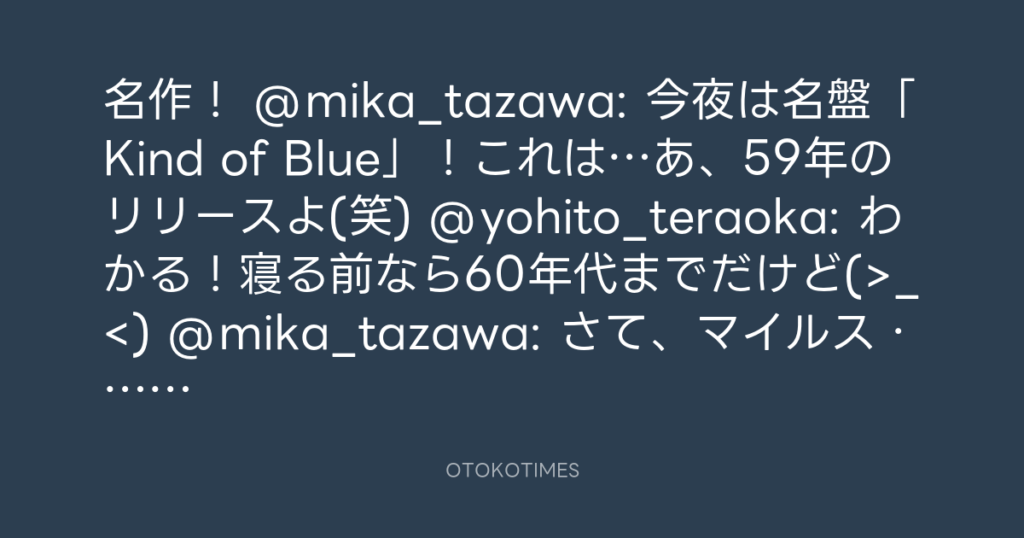 名作! @mika_tazawa: 今夜は名盤「Kind of Blue」!これは…あ、59年のリリースよ(... -