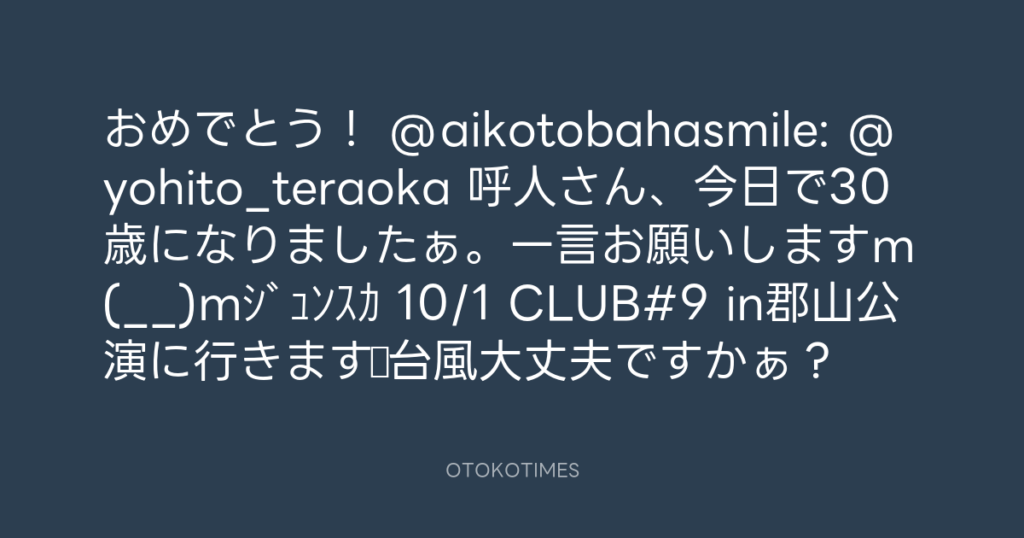 おめでとう! @aikotobahasmile: @yohito_teraoka 呼人さん、今日で30歳になりまし... -