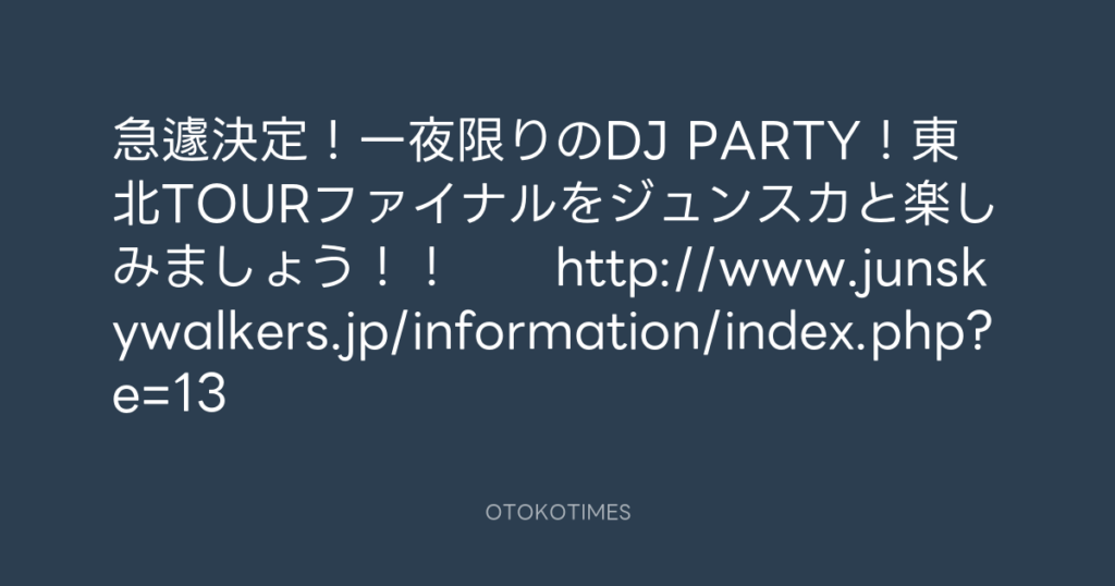 急遽決定!一夜限りのDJ PARTY!東北TOURファイナルをジュンスカと楽しみましょう... -