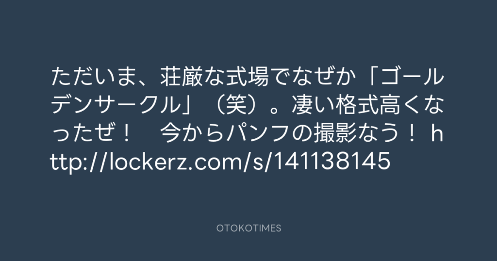 ただいま、荘厳な式場でなぜか「ゴールデンサークル」(笑)。凄い格式高くなった... -