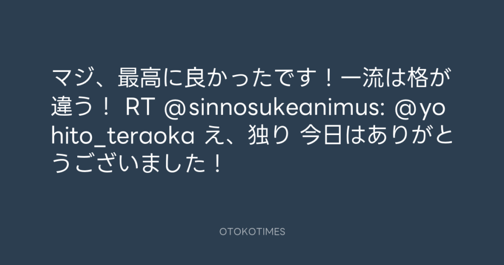 マジ、最高に良かったです!一流は格が違う! RT @sinnosukeanimus: @yohito_terao... -
