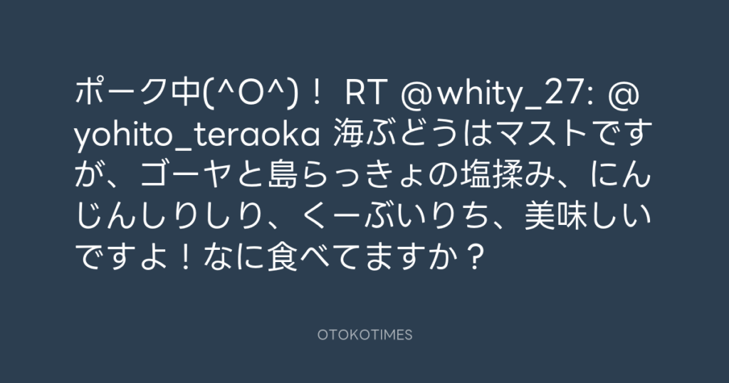 ポーク中(^O^)! RT @whity_27: @yohito_teraoka 海ぶどうはマストですが、ゴーヤ... -