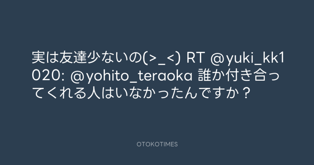 実は友達少ないの(>_<) RT @yuki_kk1020: @yohito_teraoka 誰か付き合ってく... -