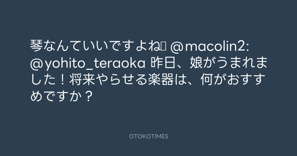 琴なんていいですよね☆ @macolin2: @yohito_teraoka 昨日、娘がうまれました!将来... -