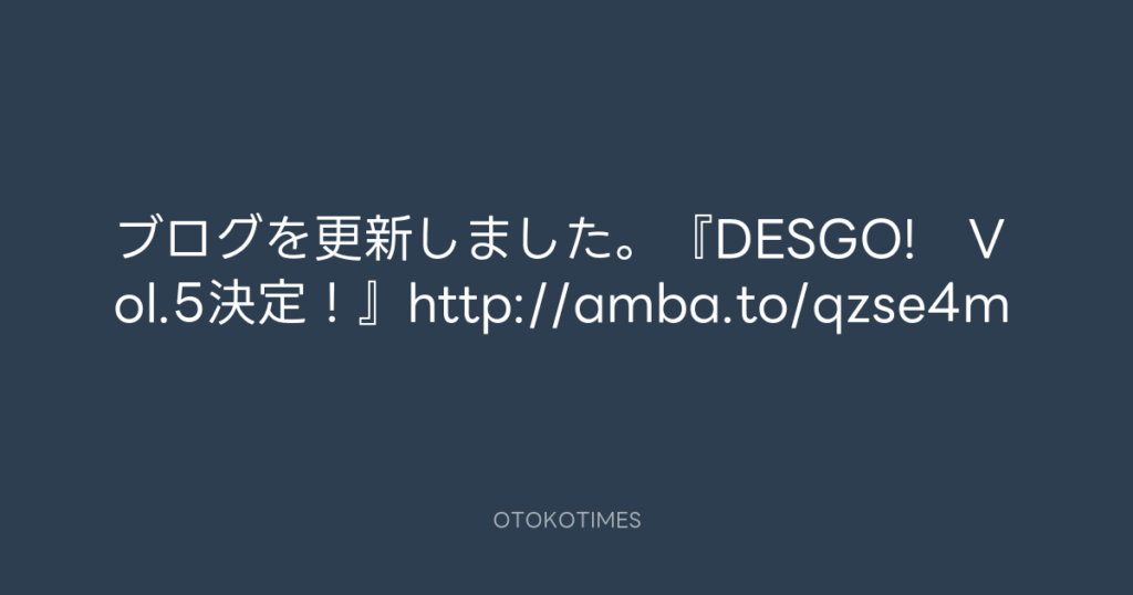 ブログを更新しました。『DESGO! Vol.5決定!』http://amba.to/qzse4m -