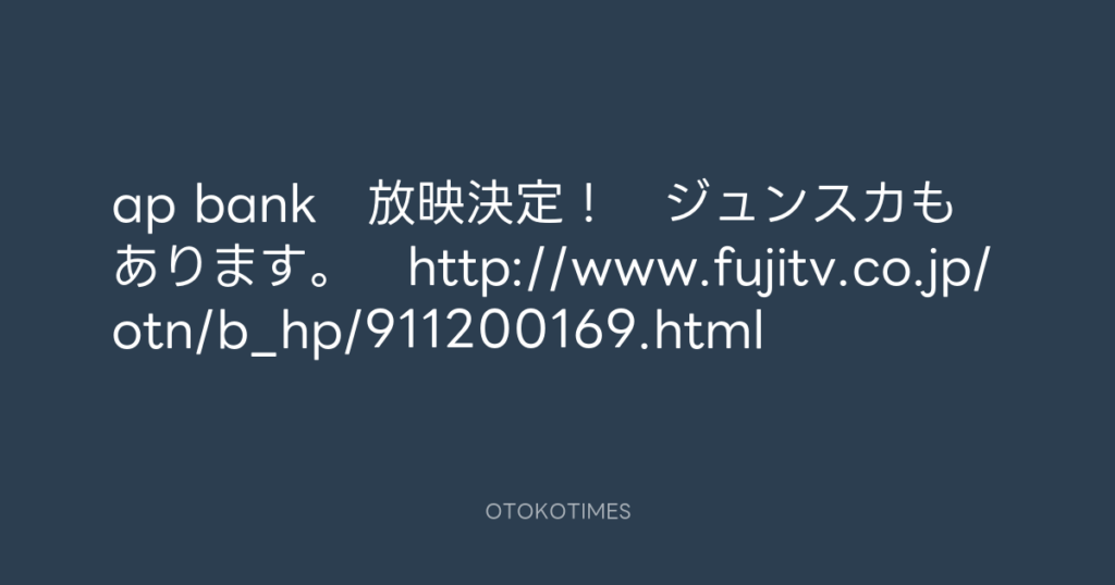 ap bank 放映決定! ジュンスカもあります。 http://www.fujitv.co.jp/otn/b_hp... -