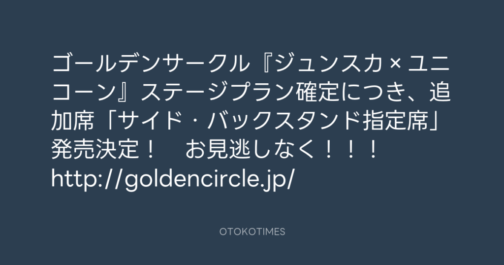 ゴールデンサークル『ジュンスカ×ユニコーン』ステージプラン確定につき、追加席「... -