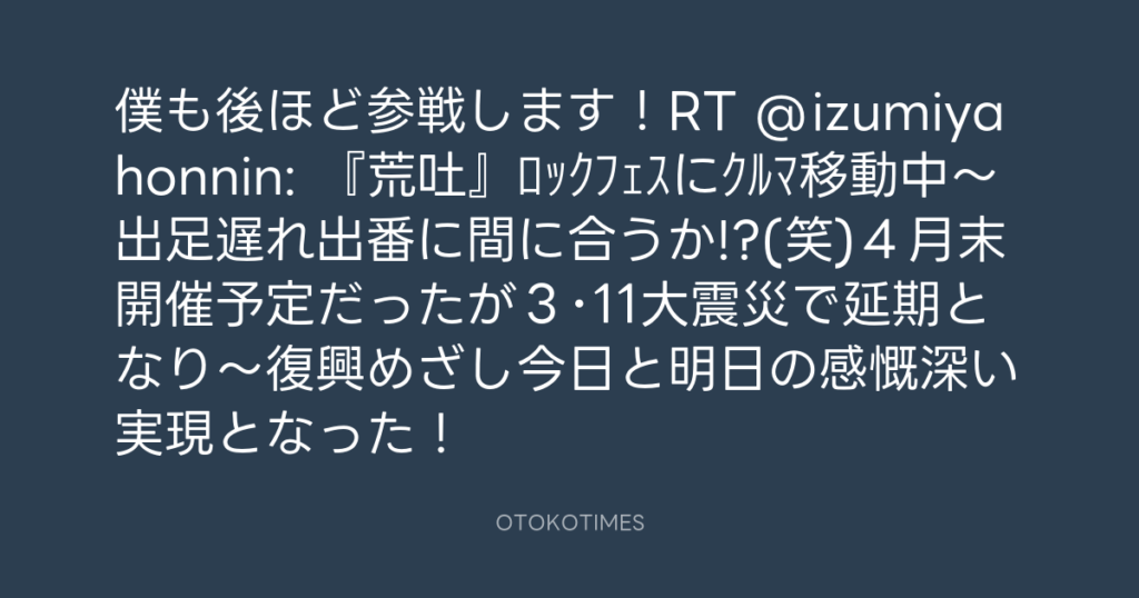 僕も後ほど参戦します!RT @izumiyahonnin: 『荒吐』ロックフェスにクルマ移動中〜出足遅れ... -