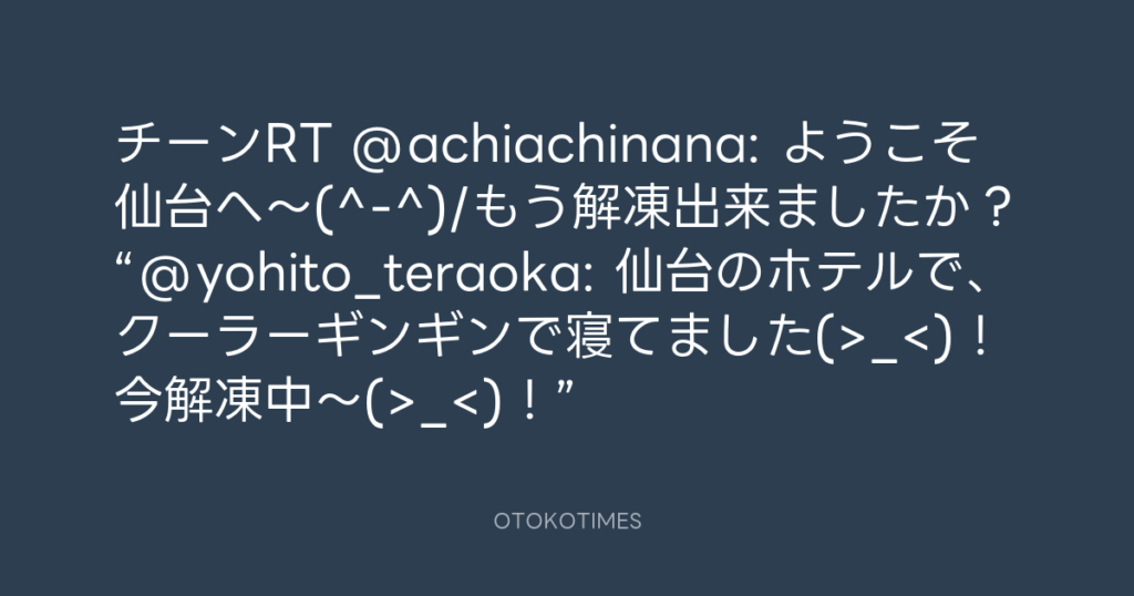 チーンRT @achiachinana: ようこそ仙台へ~(^-^)/もう解凍出来ましたか?“@yohito_... -
