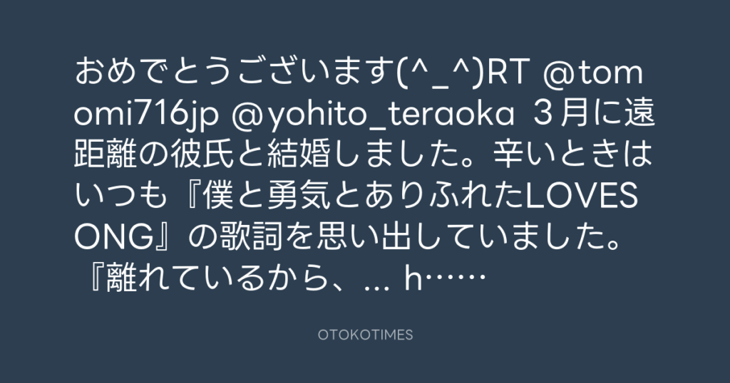 おめでとうございます(^_^)RT @tomomi716jp @yohito_teraoka 3月に遠距離の彼氏と... -