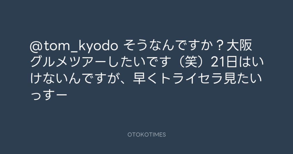 @tom_kyodo そうなんですか?大阪グルメツアーしたいです(笑)21日はいけないんで... -