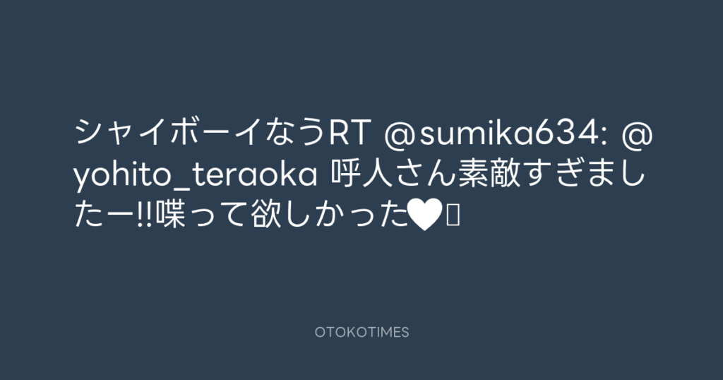 シャイボーイなうRT @sumika634: @yohito_teraoka 呼人さん素敵すぎましたー!!喋っ...