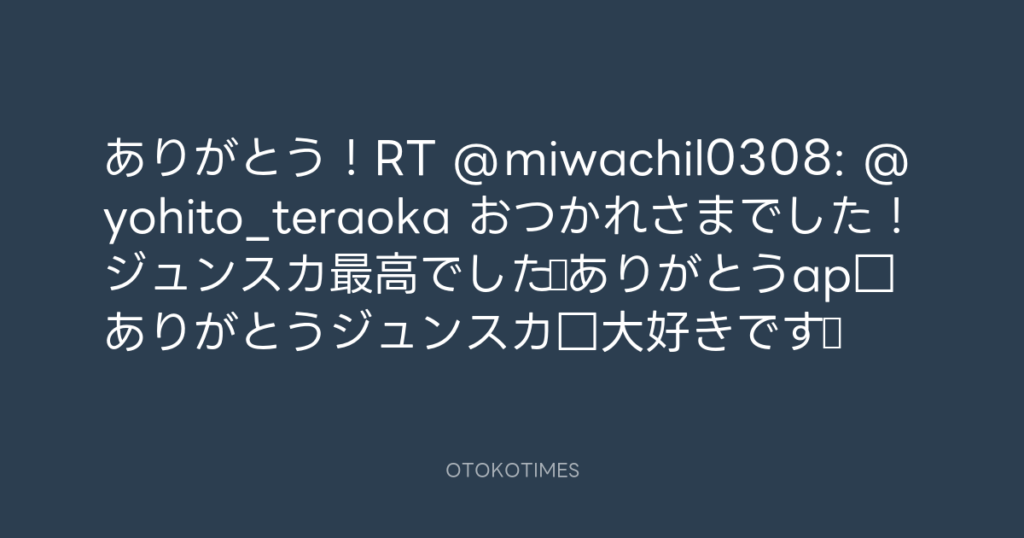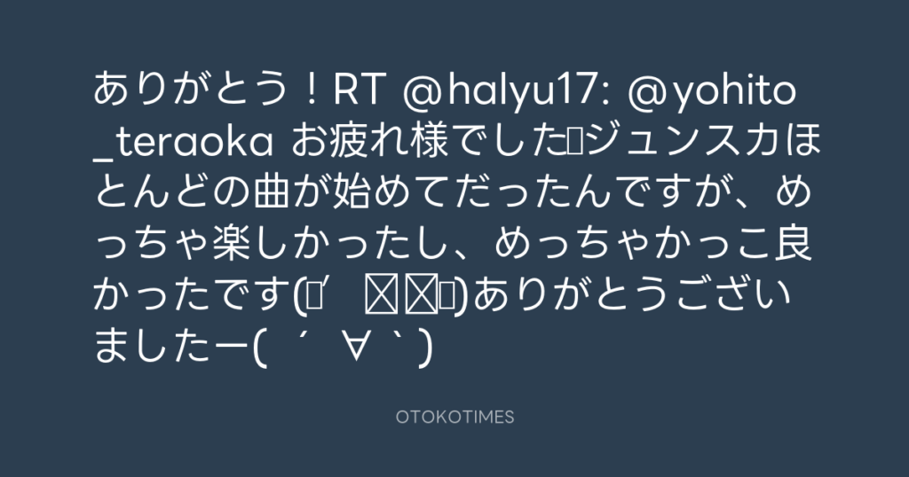ありがとう!RT @miwachil0308: @yohito_teraoka おつかれさまでした!ジュンスカ... -