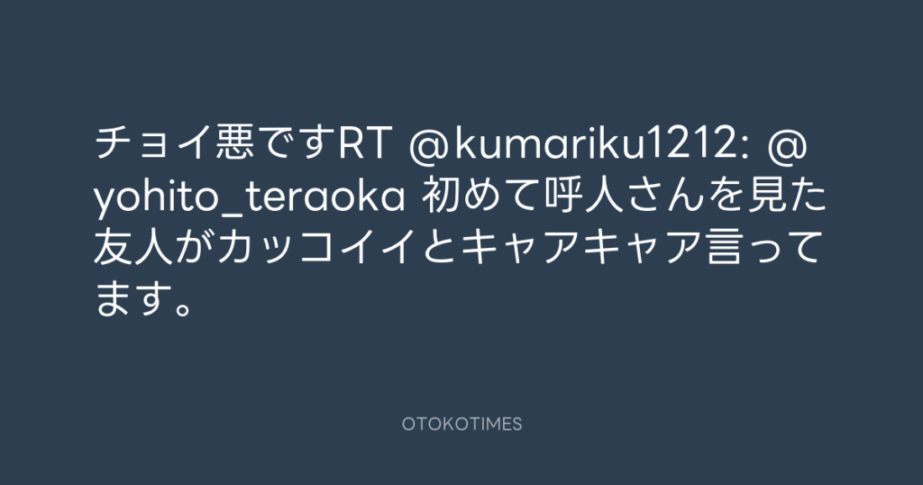 チョイ悪ですRT @kumariku1212: @yohito_teraoka 初めて呼人さんを見た友人がカッ... -