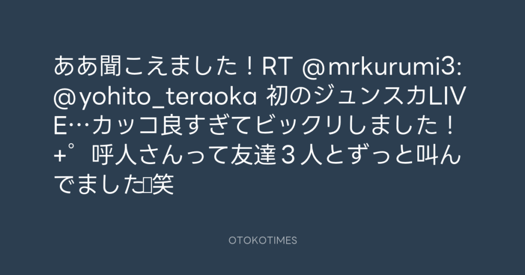 ああ聞こえました!RT @mrkurumi3: @yohito_teraoka 初のジュンスカLIVE…カッコ良... -