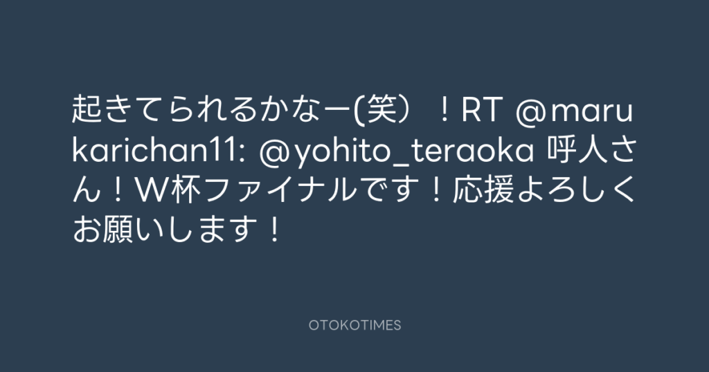 起きてられるかなー(笑)!RT @marukarichan11: @yohito_teraoka 呼人さん!W杯フ... -