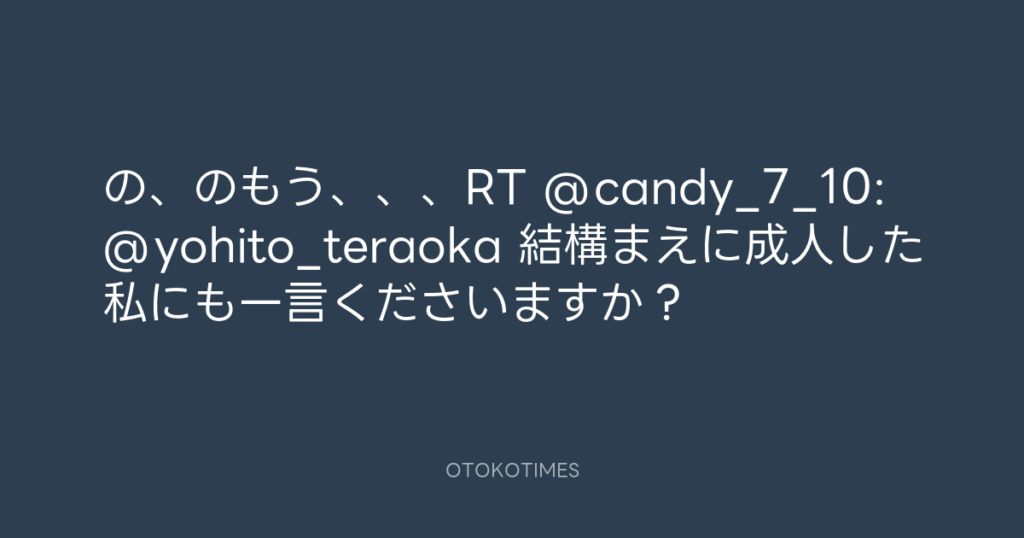 の、のもう、、、RT @candy_7_10: @yohito_teraoka 結構まえに成人した私にも一言... -